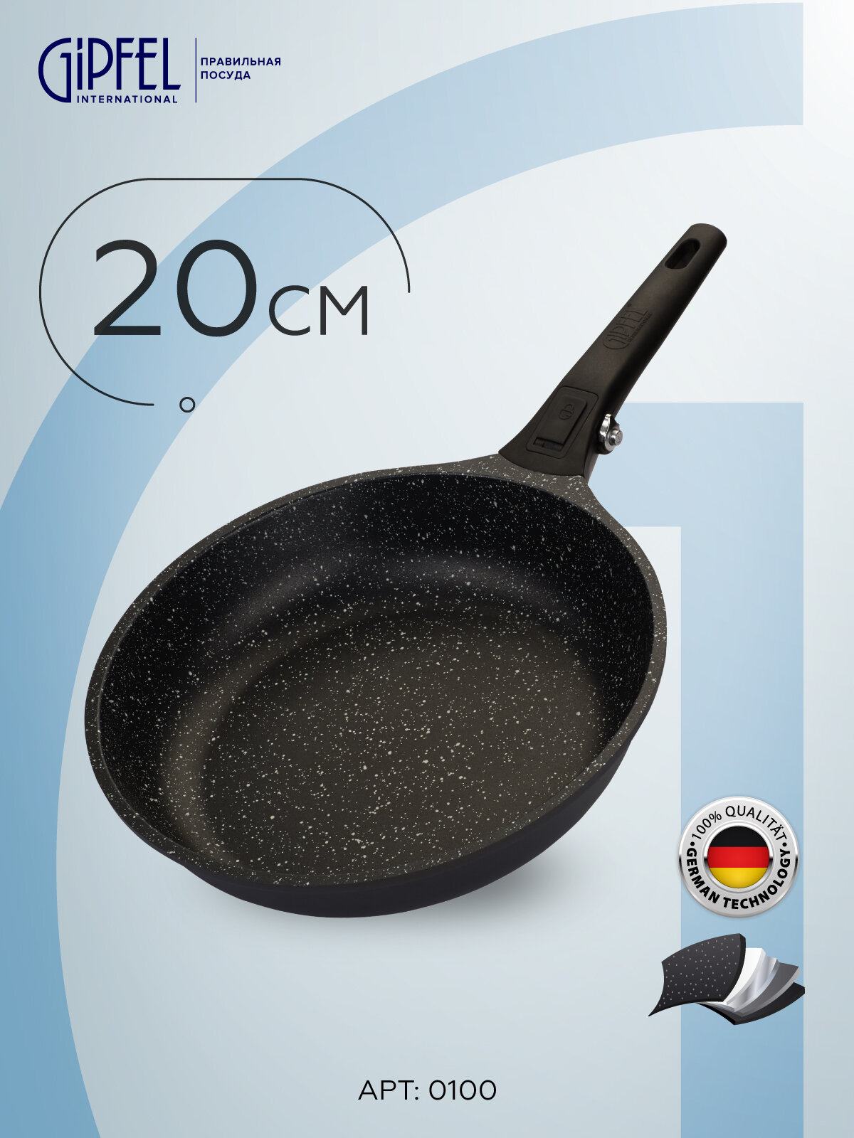 Сковорода GIPFEL MARINELLA съемная ручка, 20 см