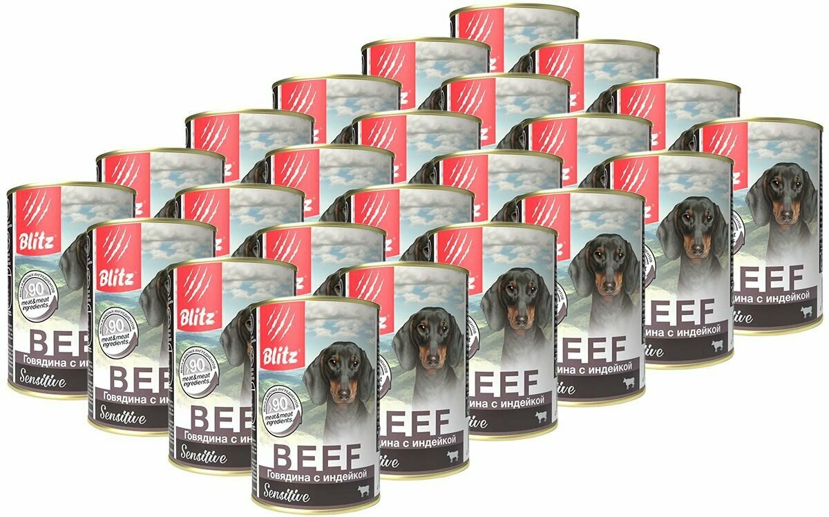Блитц Консервы для собак Говядина и индейка, 400 г, 24шт