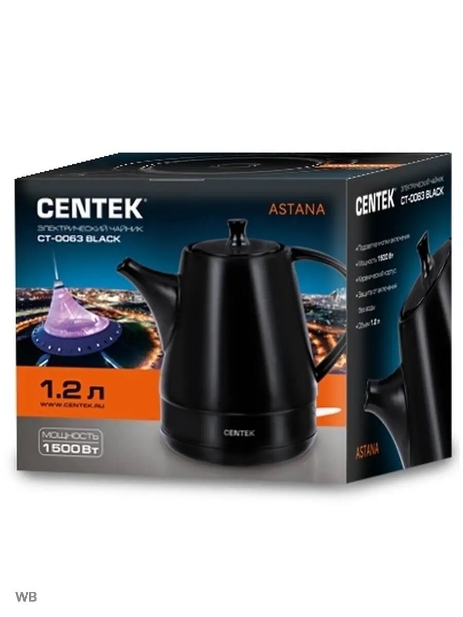 Чайник Centek CT-0063 Black Astana