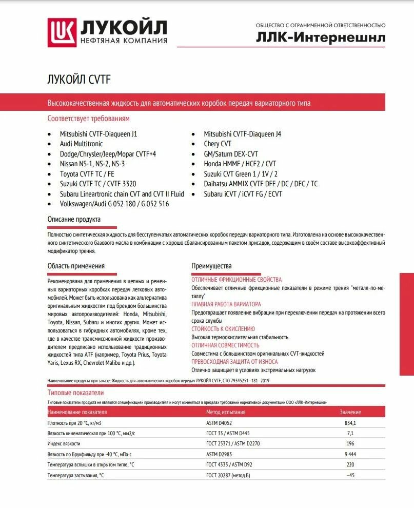 Масло Lukoil Cvtf Трансм Синт 1L Полностью Синтетическая Жидкость Для Бесступенчатых Автоматических Коробок Передач Вариаторн...