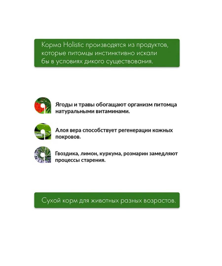 | Состав | дегидратированная курица (38%), свежая курица без костей (20%), бурый рис, куриный жир, волокна гороха, сушеная тыква (5%), сухая свекольная пульпа, рыбий жир, куриная печень, корень цикория (источник инулина и ФОС), инактивированные сухие пивные дрожжи (источник МОС), дикальций фосфат, карбонат калия, глюкозамин, хондроитин сульфат, сок юкки |