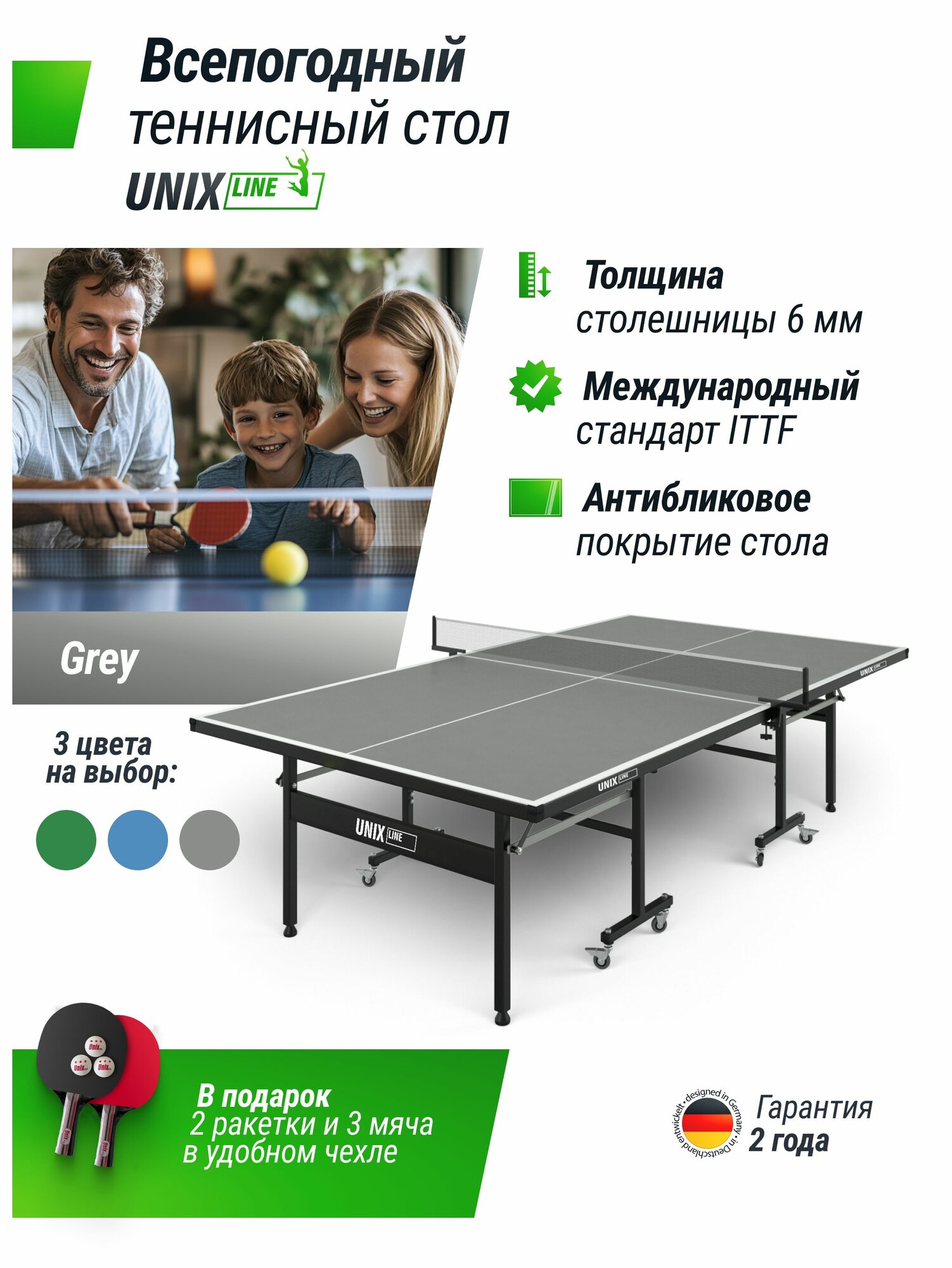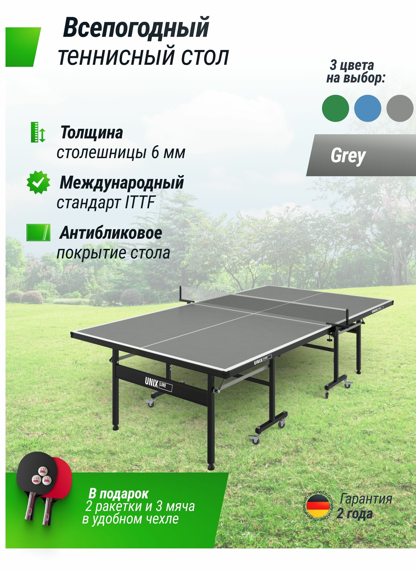 Всепогодный теннисный стол UNIX LINE outdoor 6mm (grey) интересное: