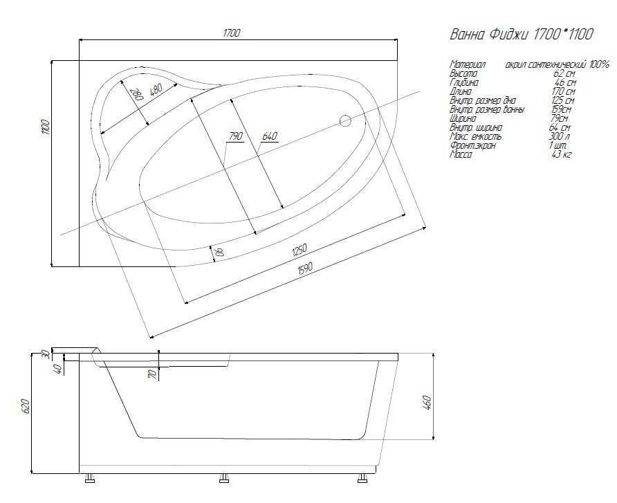 | Размеры (ДхШхВ) | 170х110х46 см |