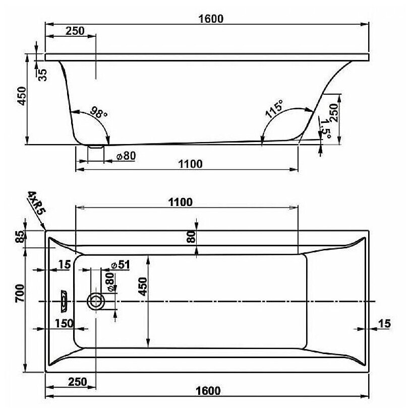 Акриловая ванна VAGNERPLAST VERONELA 160x70