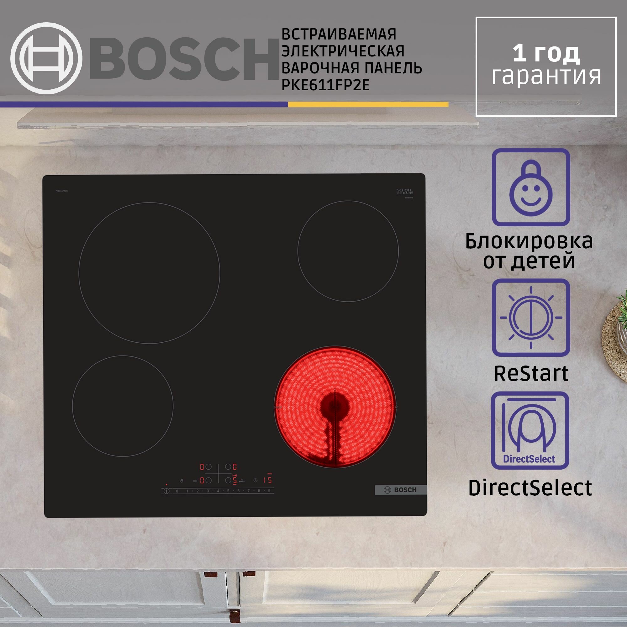 Встраиваемая электрическая варочная панель Bosch PKE611FP2E интересное: