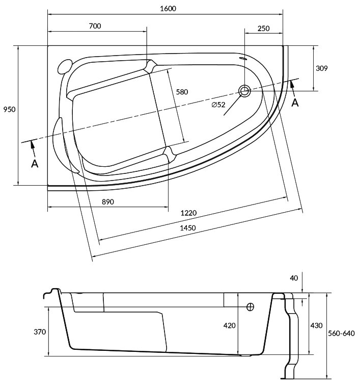 Ванна асимметричная JOANNA NEW 160x95 левая белый