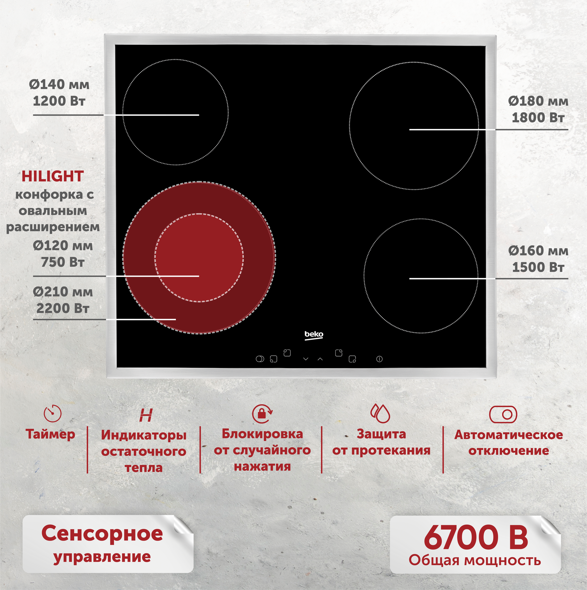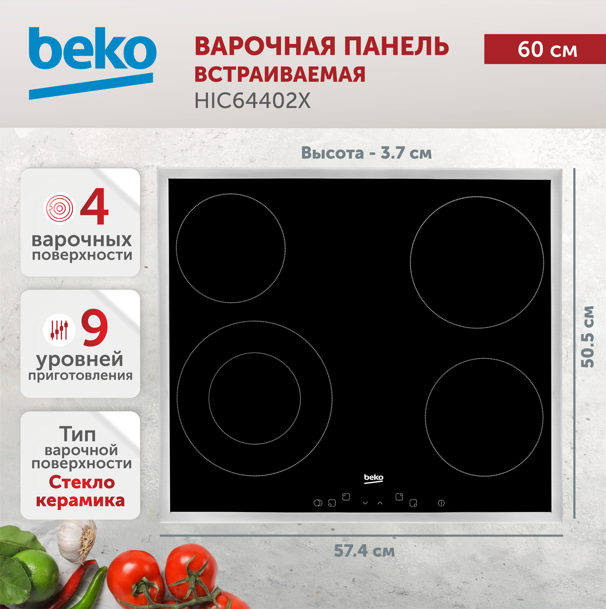 Электрическая варочная панель Beko HIC 64402 X, цвет панели черный, цвет рамки серебристый