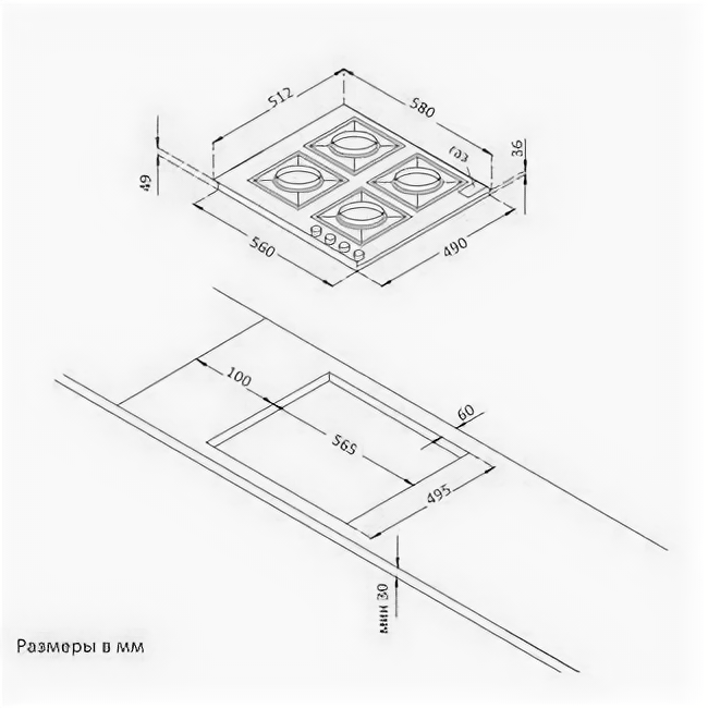 | Ширина для встраивания | 56 см |
