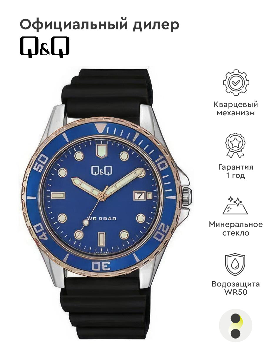 Мужские наручные часы Q&Q Attractive A172J382Y интересное:
