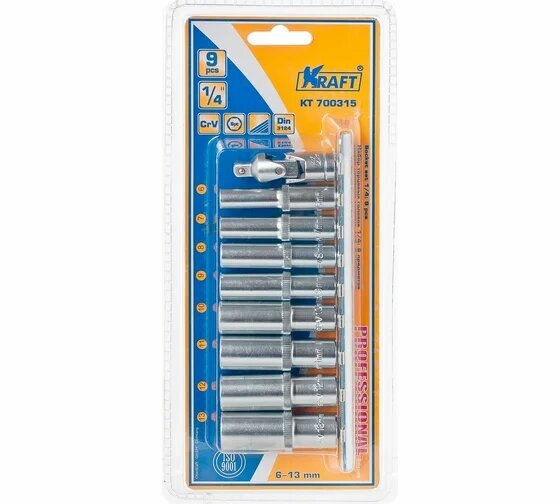 KRAFT KT700315 Набор головок 1/4 6-13мм 9шт KRAFT