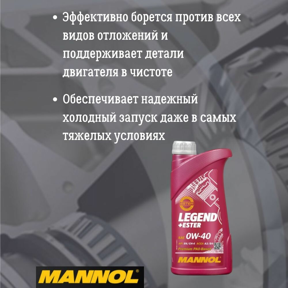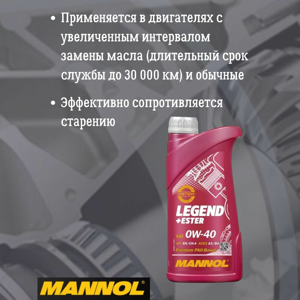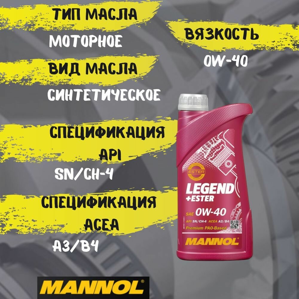 Масло моторное Mannol Legend +Ester 0w40 синтетическое, API SN/CH-4, ACEA A3/B4, универсальное, 1л, арт. 7901
