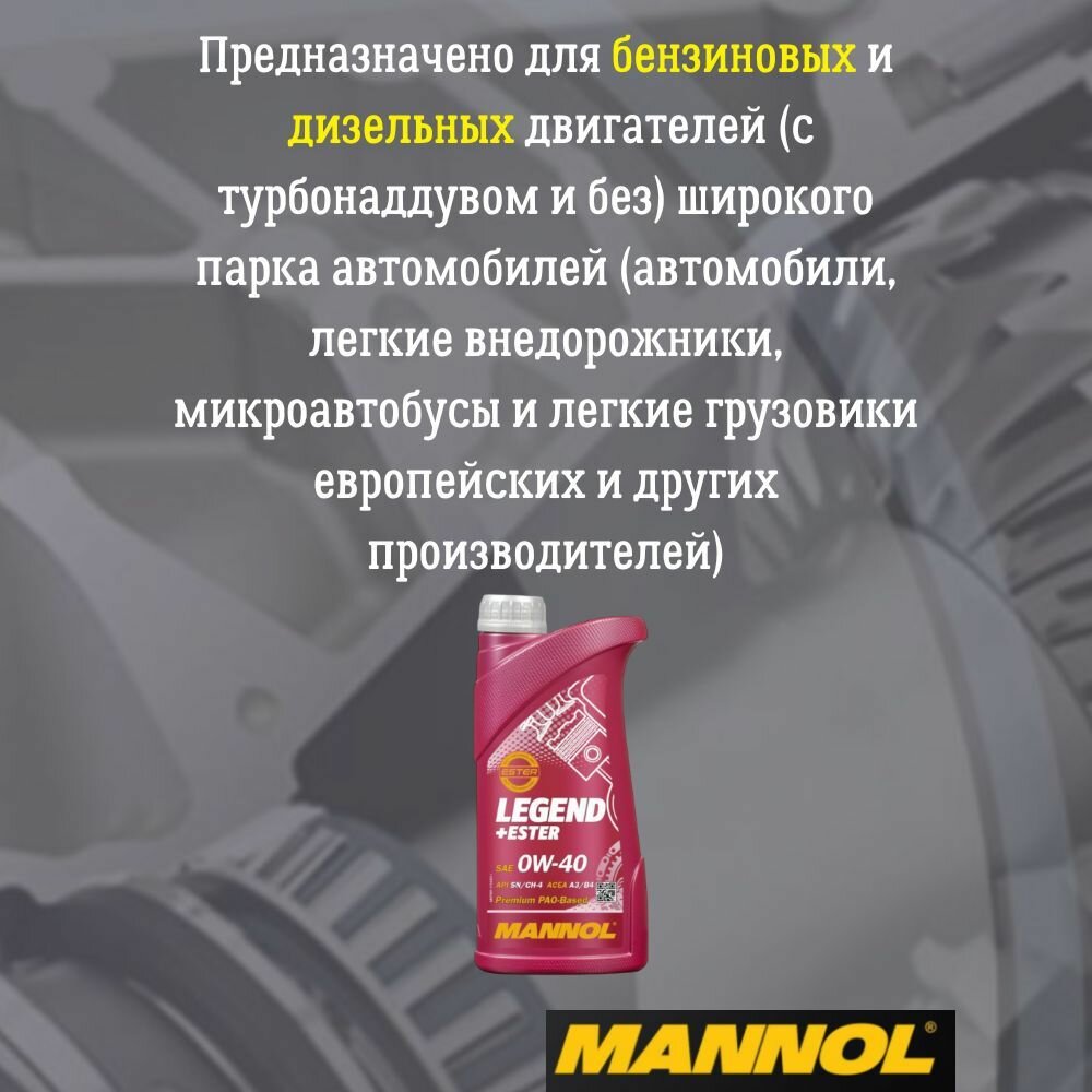 СохранитьMANNOL 1000 7901 MANNOL LEGEND Ester 0W40 1 . Синтетическое масо 0W-40 интересное: