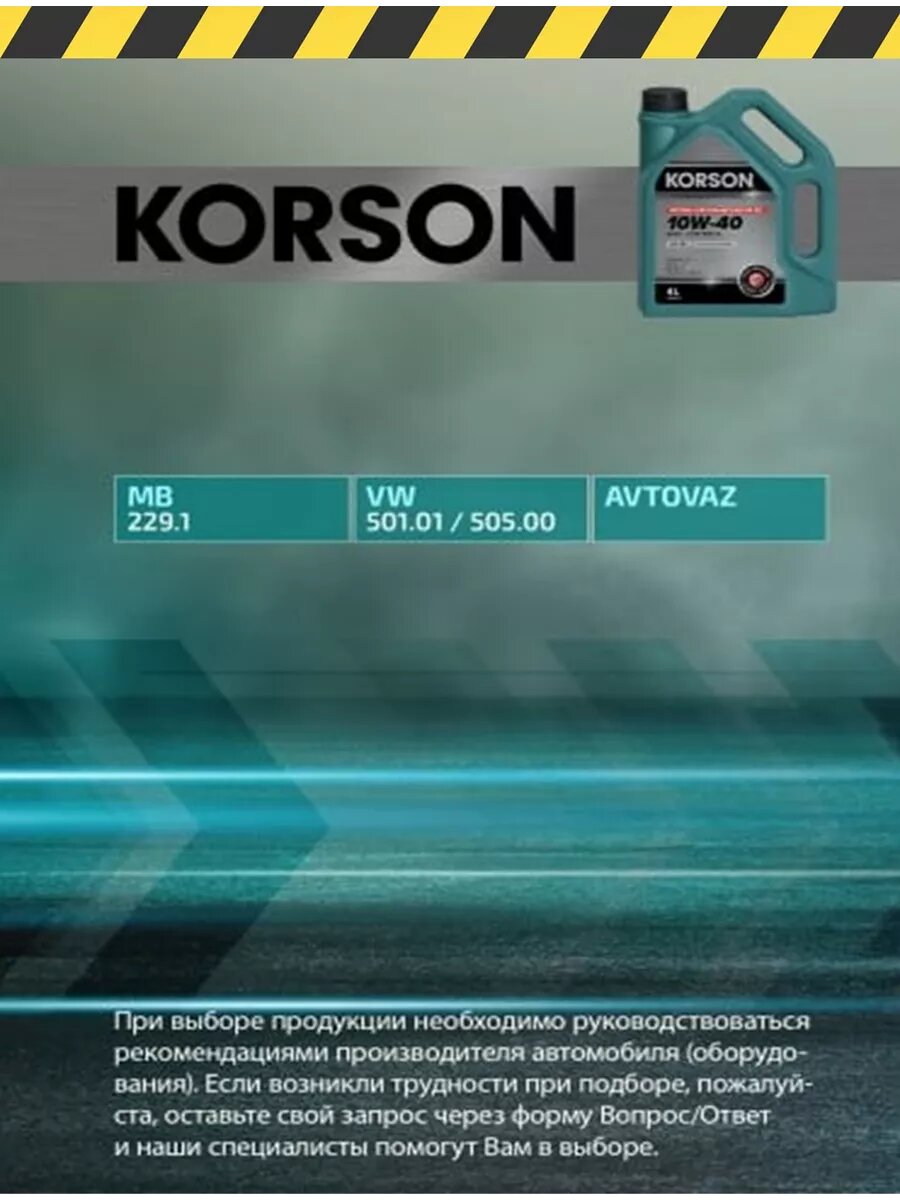 KORSON KS00042 Масло моторное 10W-40 A3/B3 4L (полусинтетическое) 1шт