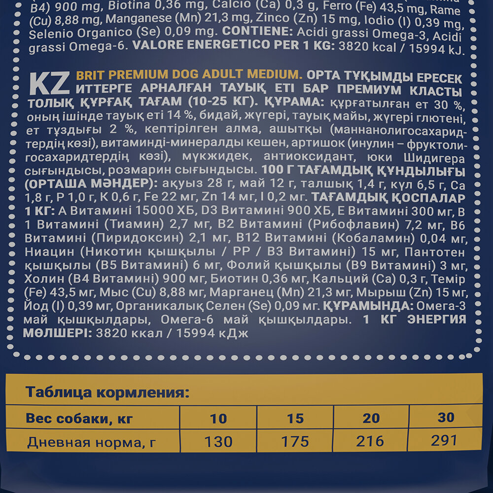 BRIT (Брит) Premium Dog Adult Medium Корм сух. д/взрослых собак средних пород с курицей 15 кг