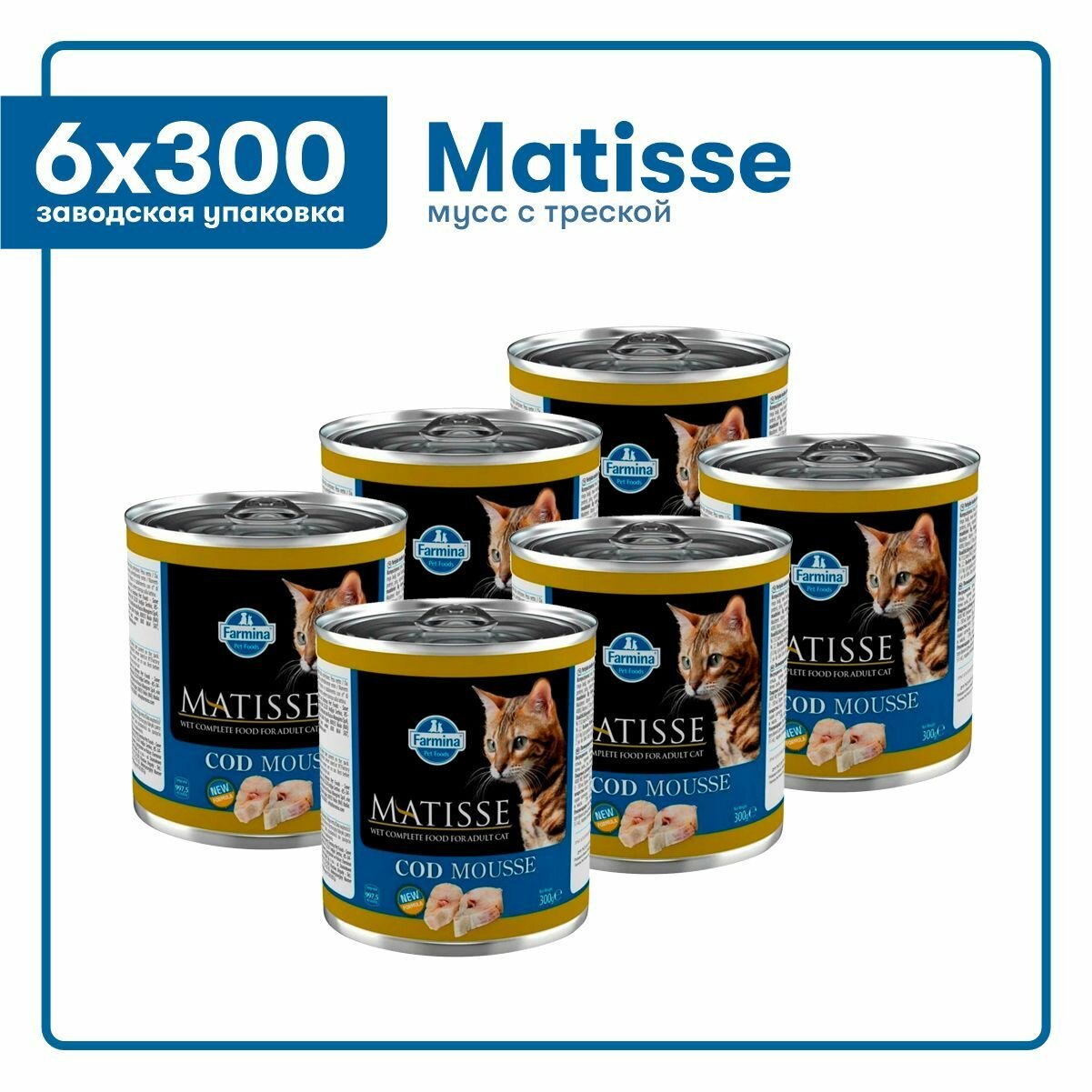 Консервы/влажный корм Matisse Cat Mousse Codfish для кошек всех пород, с треской, (300 гр*6 шт)
