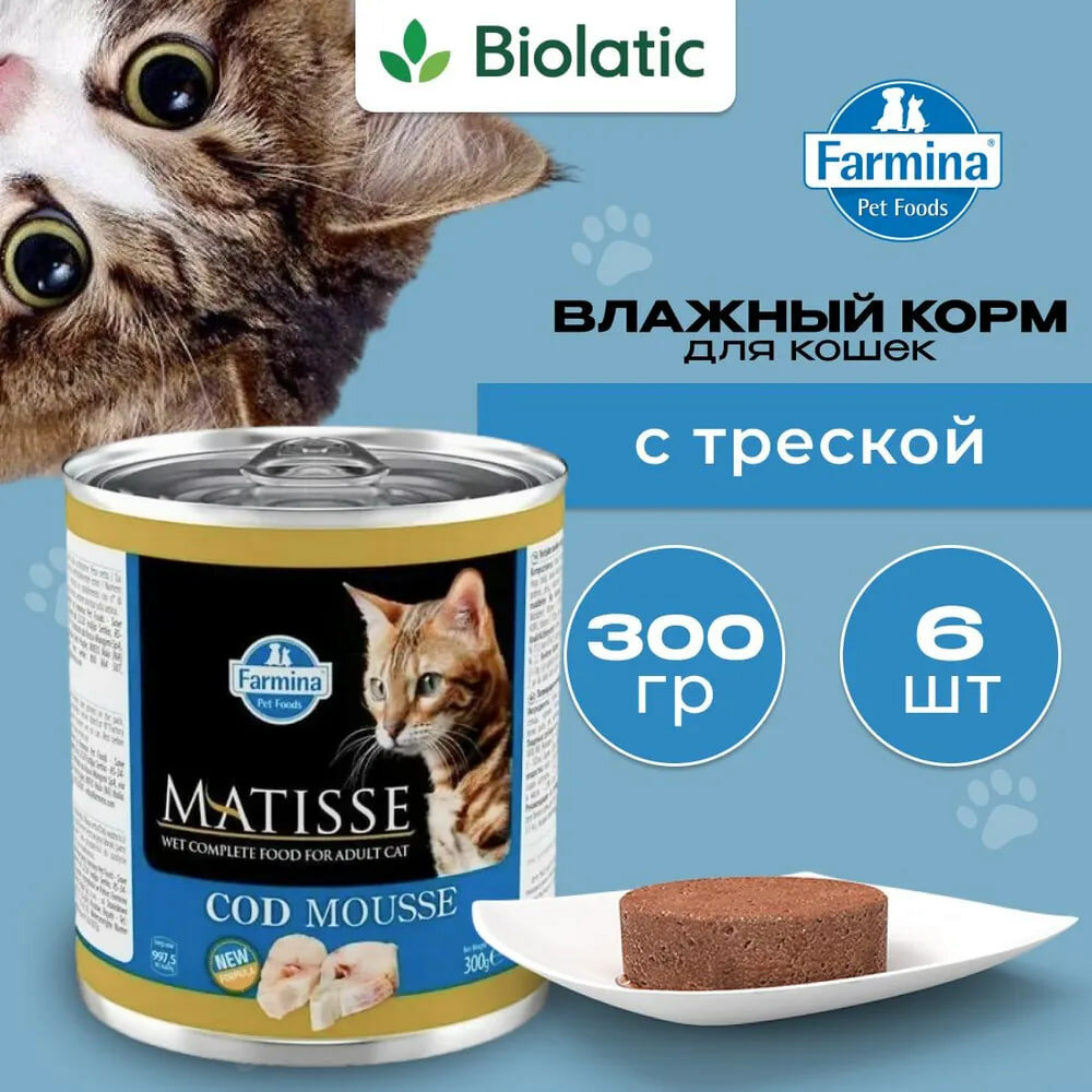 Корм консервированный для кошек Farmina Matisse, 300г, мусс с треской, 1 шт