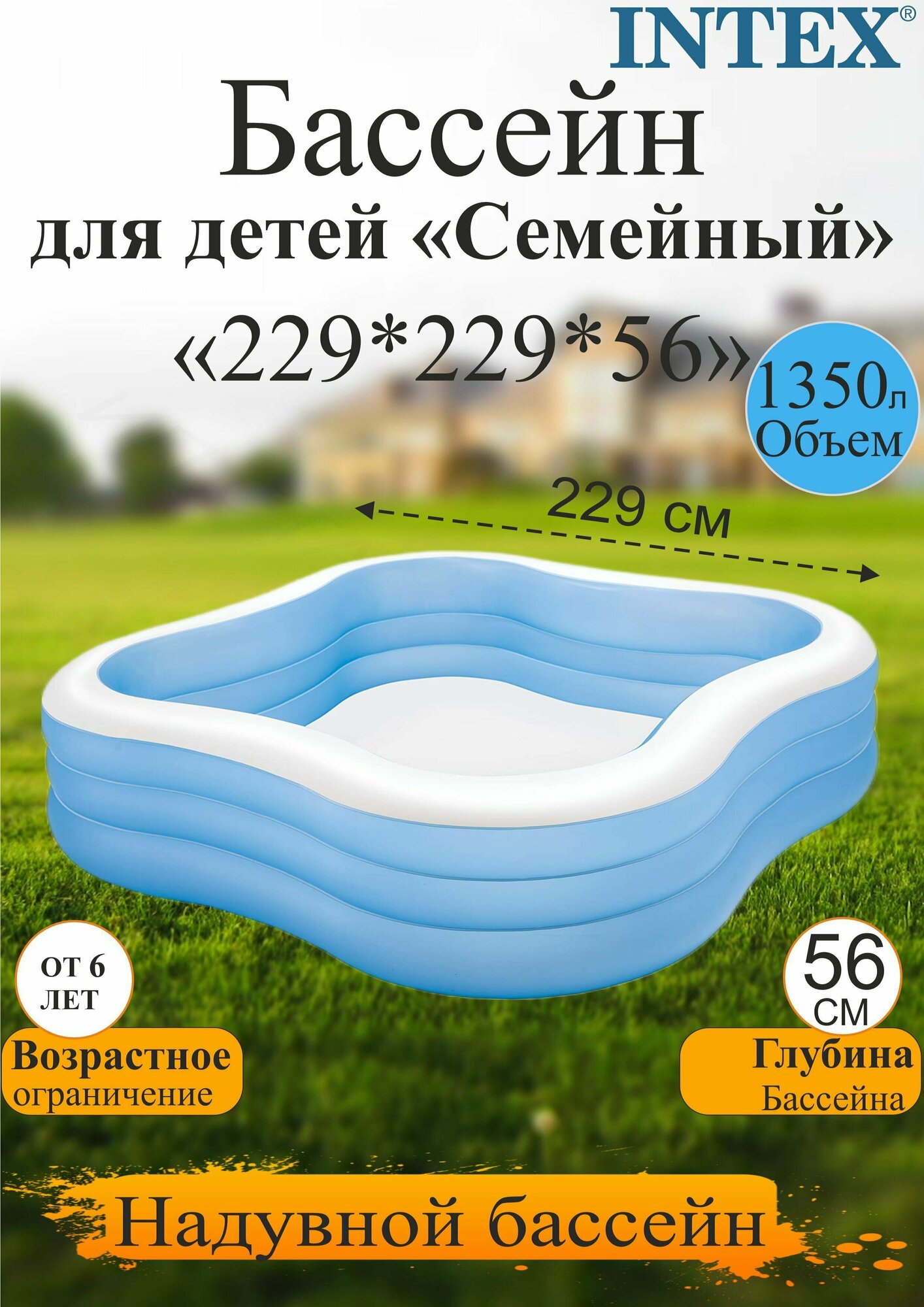 Надувной детский бассейн INTEX Семейный 229х229х56 см (с сиденьями), артикул 56475
