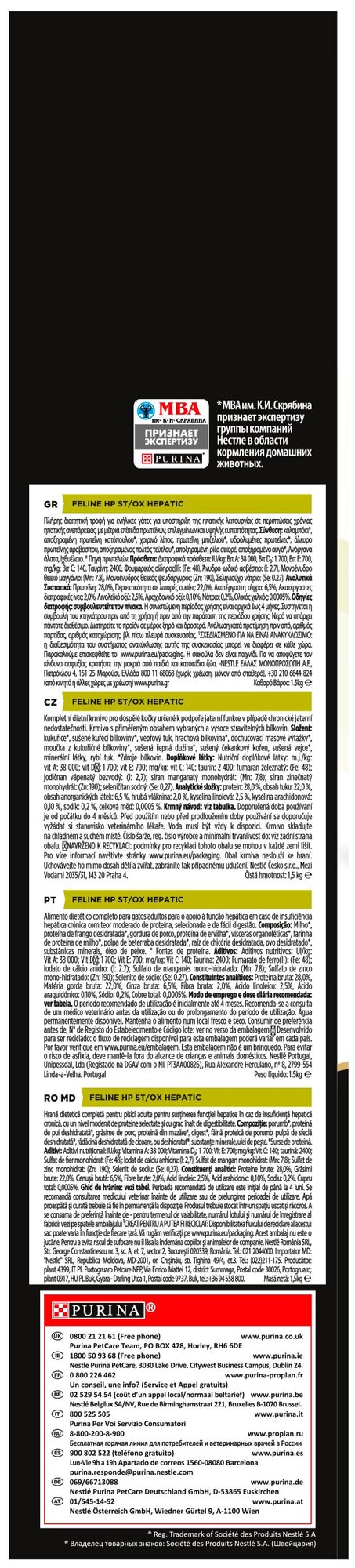 Purina® Pro Plan® Veterinary diets® HP St/Ox - сухой полнорационный диетический корм для взрослых кошек при хронической печеночной недостаточности (1,5 кг)