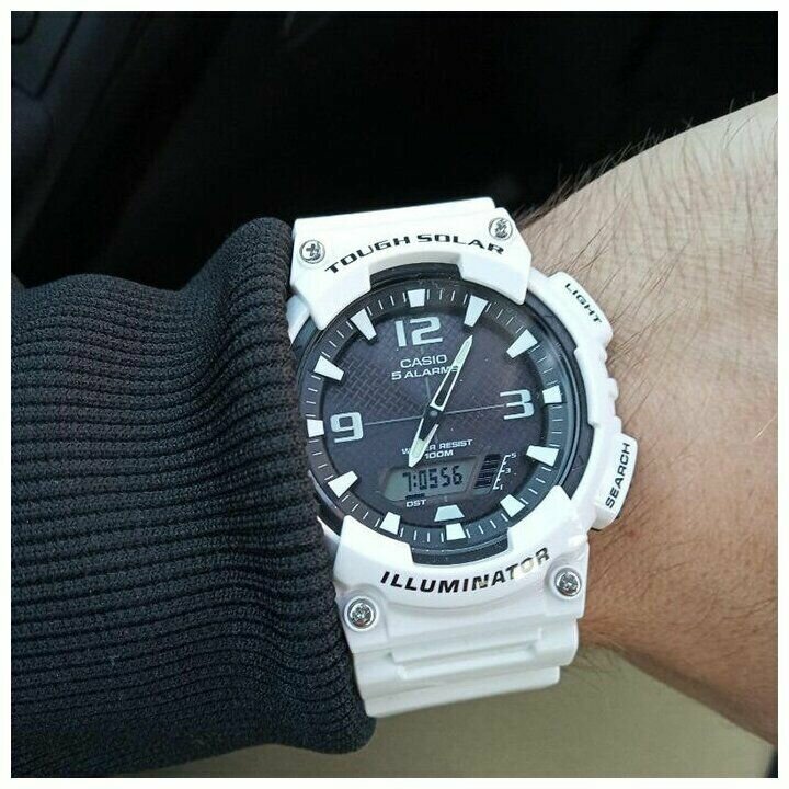 | Плюсы: | Белый цвет корпуса, большой хорошо читаемый стрелочный циферблат. Флуоресцентная подсветка стрелок. Водозащита WR100. 5 будильников, удобно, если надо что-то делать по расписанию несколько раз в день.