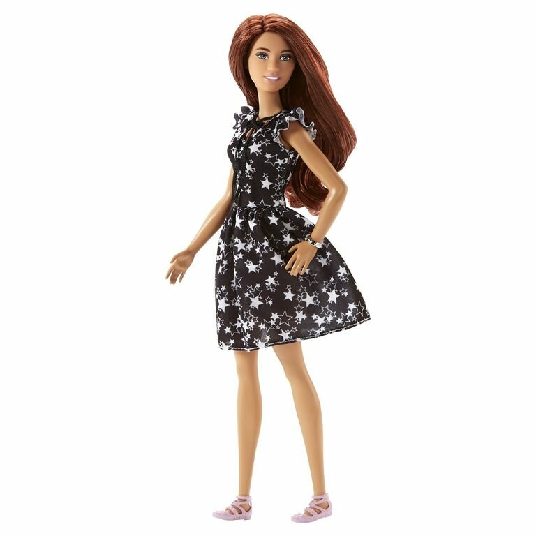 Купить Кукла Барби серия Игра с модой FJF39 (FGF39) Барби брюнетка в черном платье со звездочками