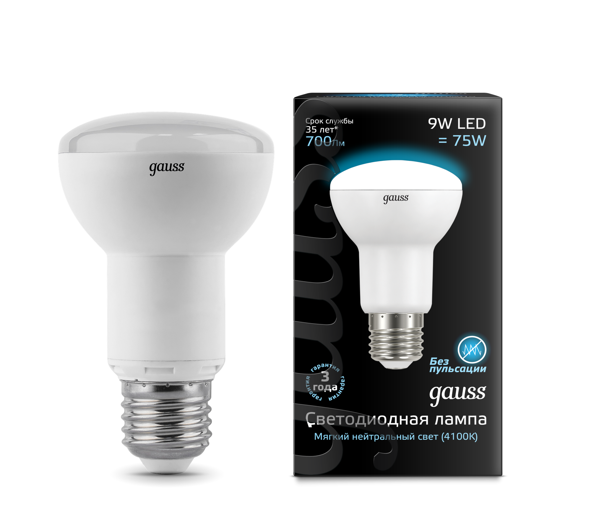 Лампа светодиодная gauss 106002209, E27, R63, 9 Вт, 4100 К