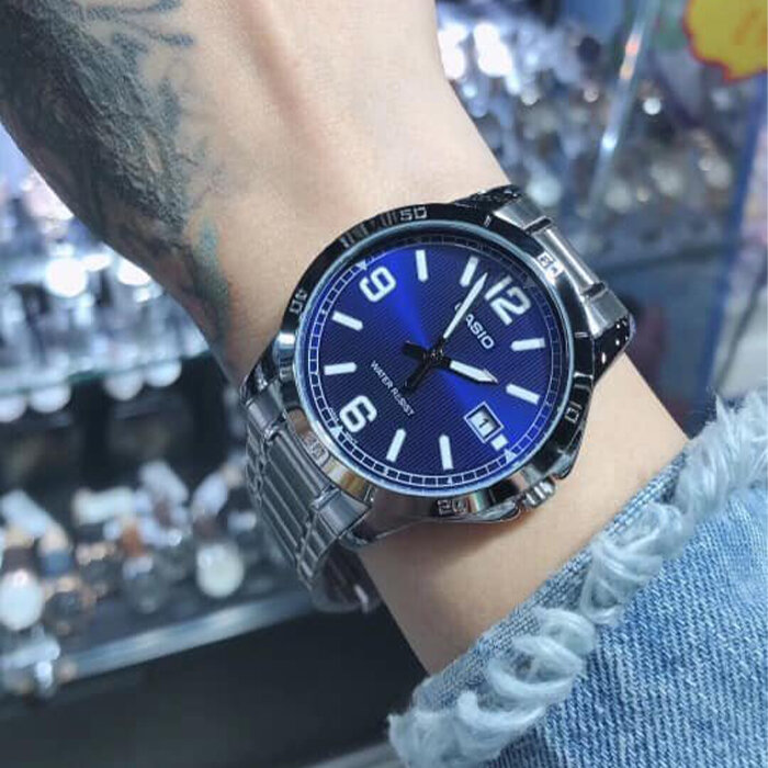 Наручные часы CASIO MTP-V004D-2B, серебряный, синий