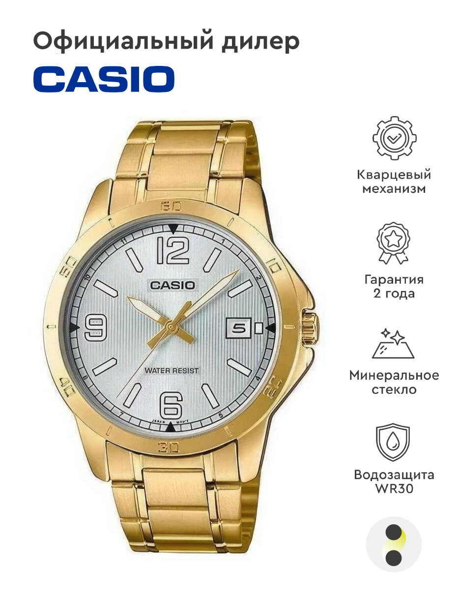 Наручные часы CASIO MTP-V004G-1B кварцевые, водонепроницаемые, подсветка стрелок, золотой
