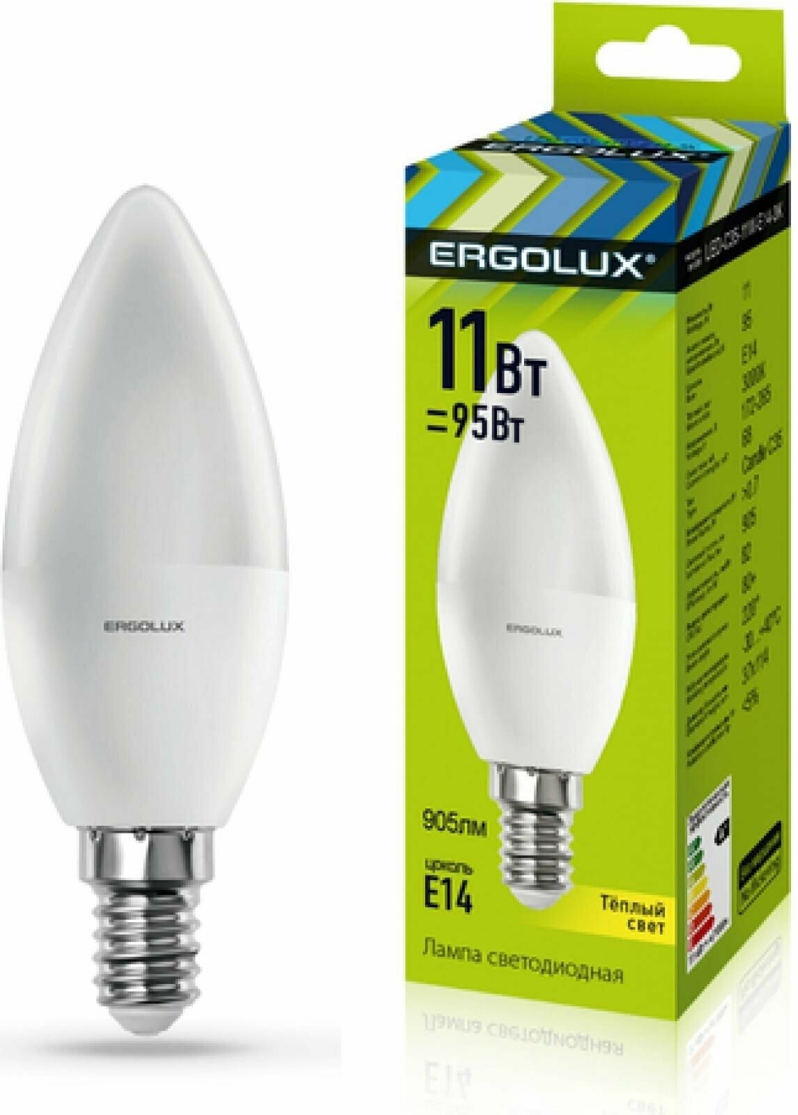 Лампочка светодиодная C35 Ergolux, 11Вт 220В, цоколь Е14, теплый свет 3000К, 1 шт.