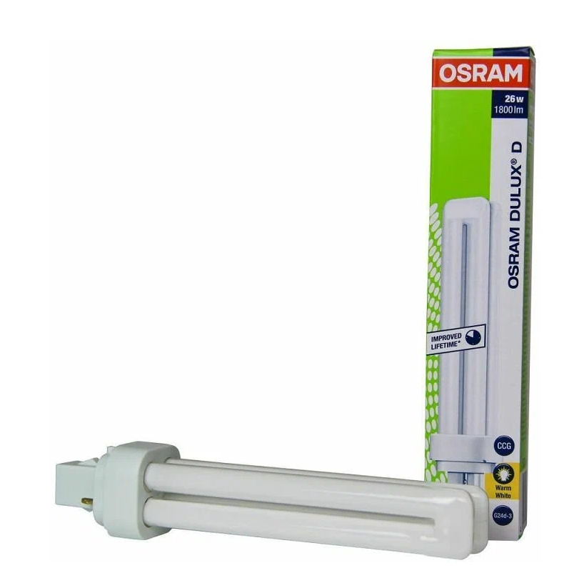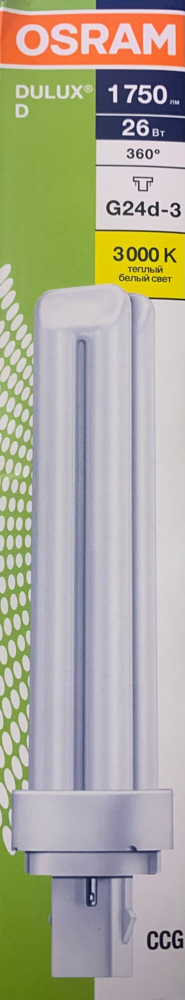 Лампа люминесцентная Osram DULUX D 26W/31-830 G24d-3 тёплый белый 3000К, упаковка 1шт