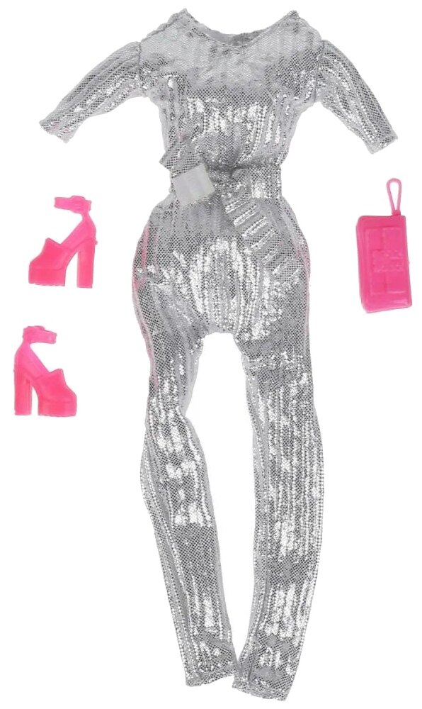 | В комплект входит | блестящий серебристый комбинезон, туфли, сумочка-клатч |