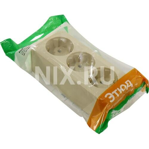 Розетка Schneider Electric Этюд тройная PA16-011K открытая установка кремовая с заземлением IP20