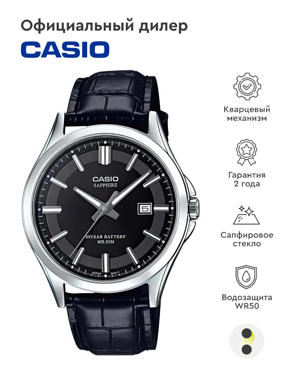 Наручные часы CASIO Collection MTS-100L-1A кварцевые, водонепроницаемые, подсветка стрелок, черный