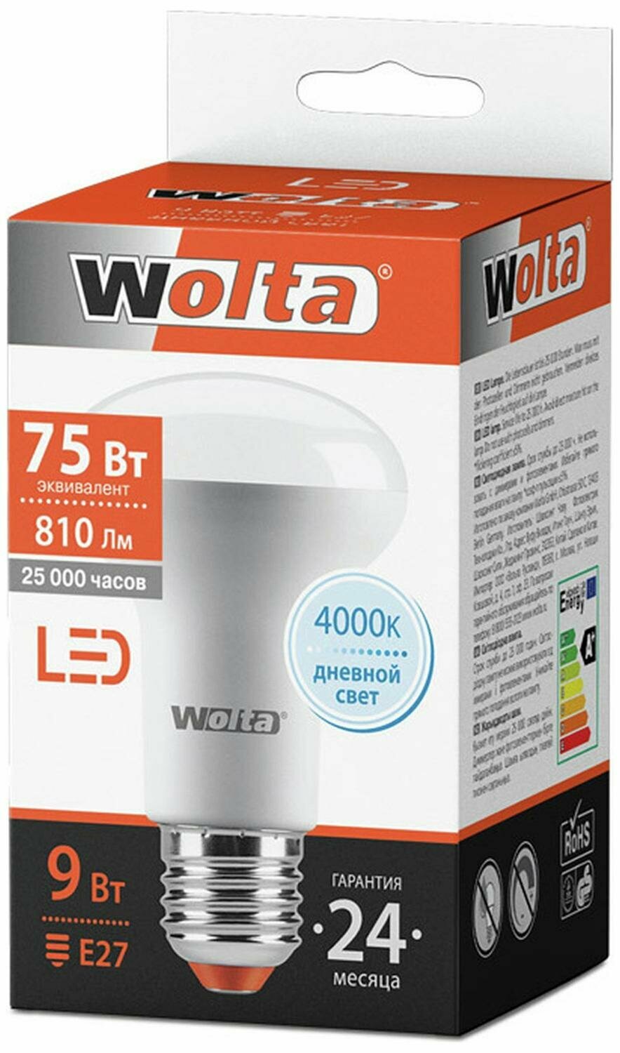 Лампа светодиодная WOLTA Рефлектор R63 9Вт 4000К 810лм Е27