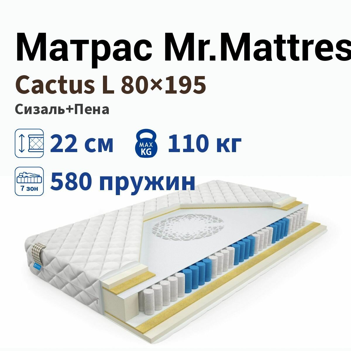 Матрас Mr.Mattress Cactus L, Размер 115х190 см