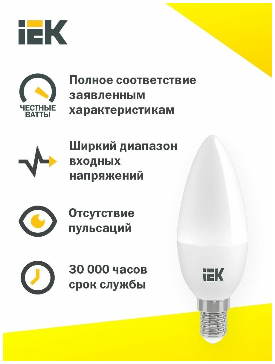 Лампа светодиодная IEK ECO 4000K, E14, C35, 9 Вт, 4000 К