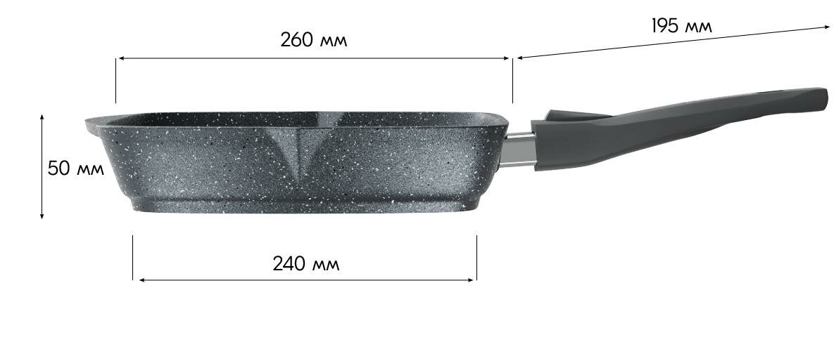 Сковорода-гриль 26*26см со съемной ручкой, Гранит black