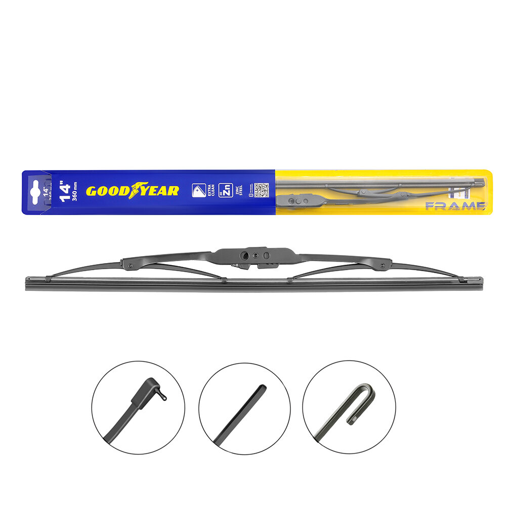 Каркасная щетка стеклоочистителя Goodyear FRAME 14"/36 cm, Дворник для автомобиля (3 переходника в комплекте)