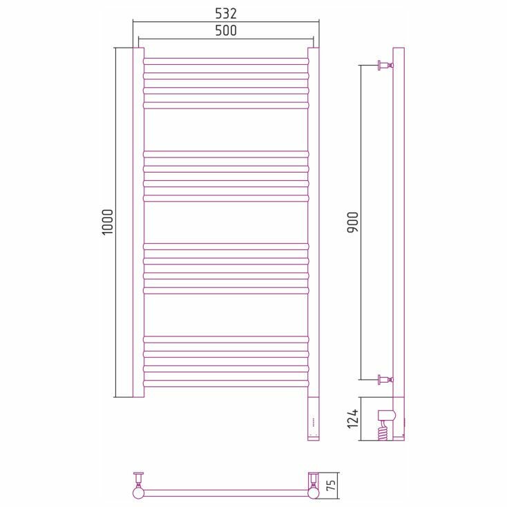 Полотенцесушитель электрический "богема 3.0" прямая 1000х500 / МЭМ правый (Без покрытия)