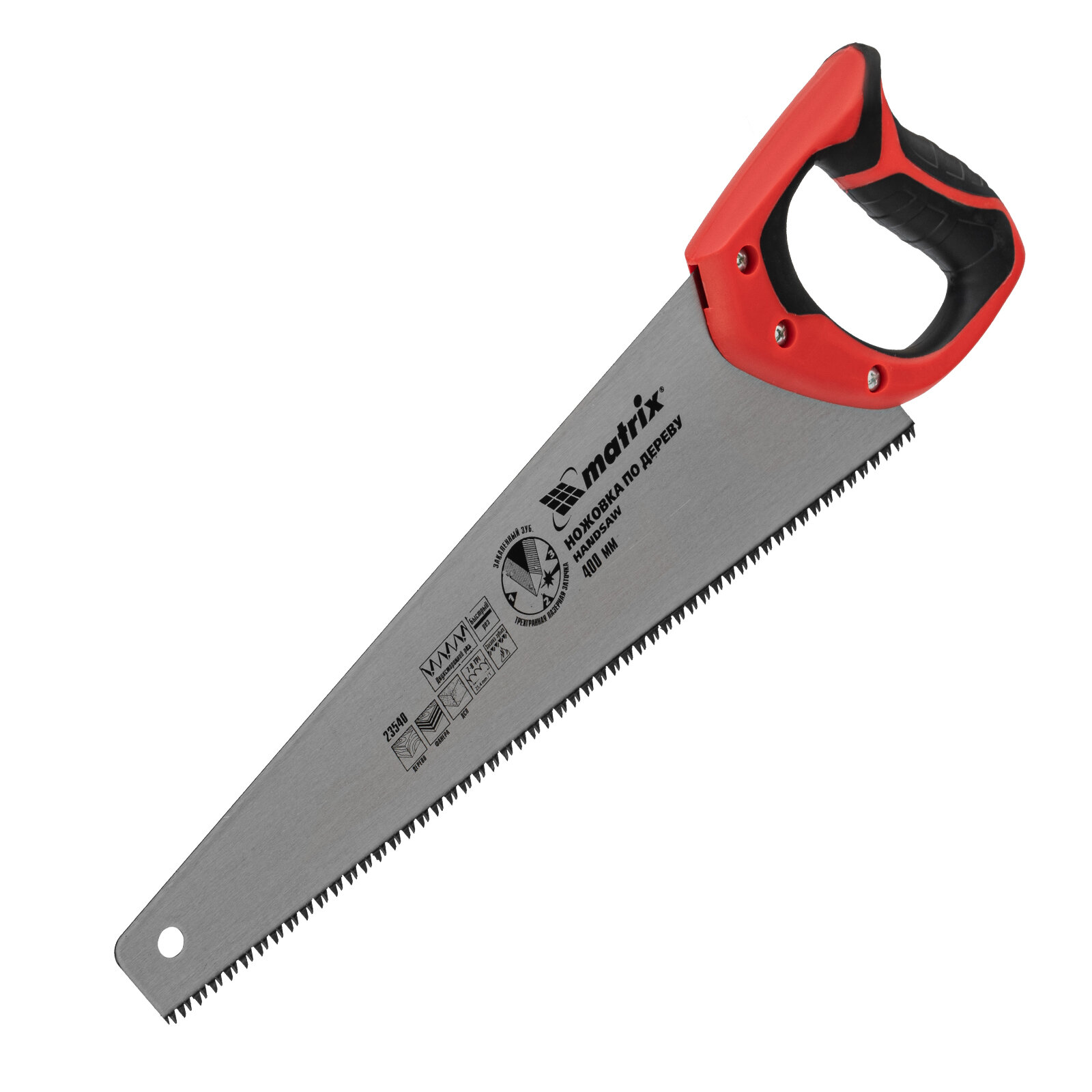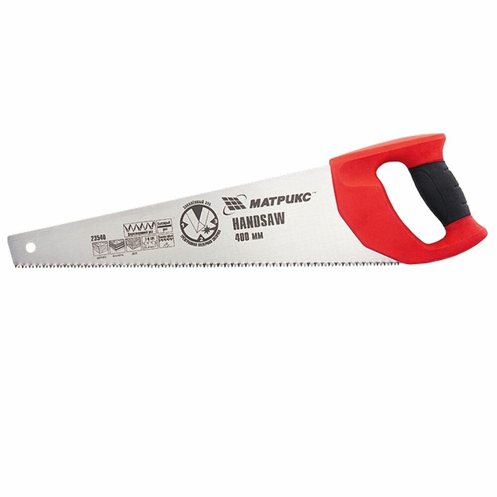 Ножовка ручная по дереву Matrix 23540 (зубьев на дюйм 7, 9; длина 400 мм, вес 0.41 кг, прорезиненная рукоятка)