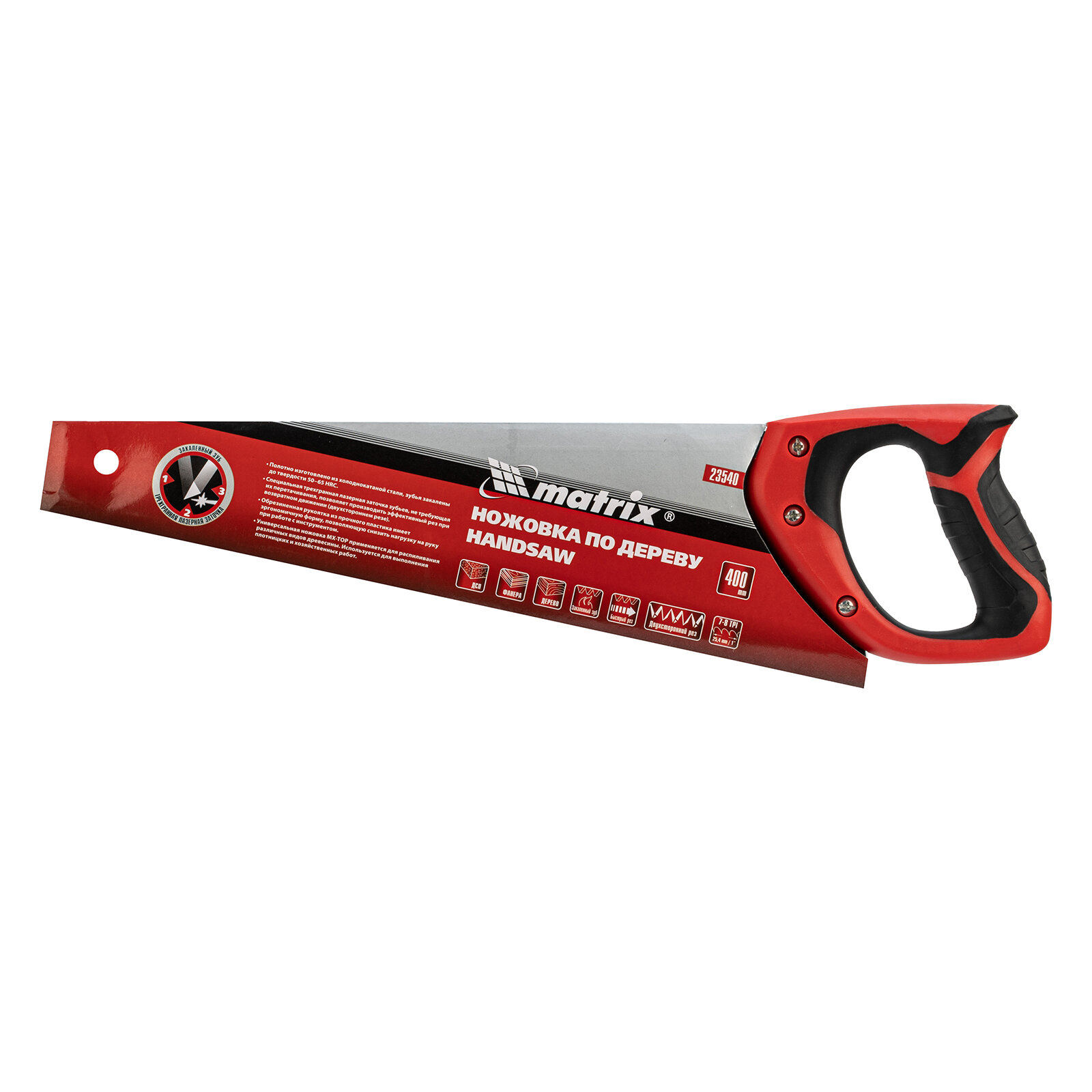 Ножовка по дереву, 400 мм, 7-8 TPI, зуб-3D, каленый зуб, двухкомпонентная рукоятка Matrix 23540