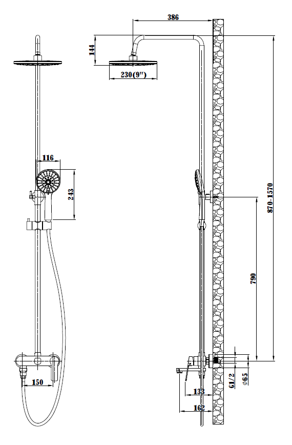 ESKO. Душевая система со смесителем телескопическая