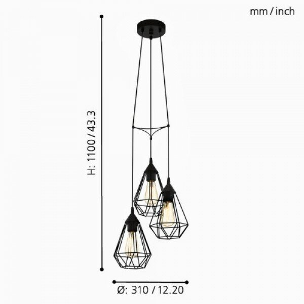 94191 Подвес TARBES, 3x60W (E27), Ø310, Н1100, сталь, пластик, черный