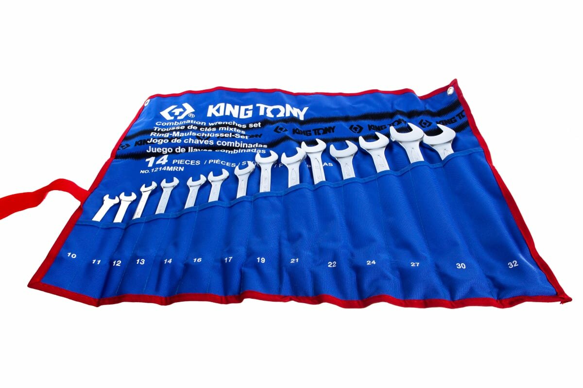 Купить 1214MRN, KING TONY Набор комбинированных ключей, 10-32 мм, чехол из теторона, 14 предметов