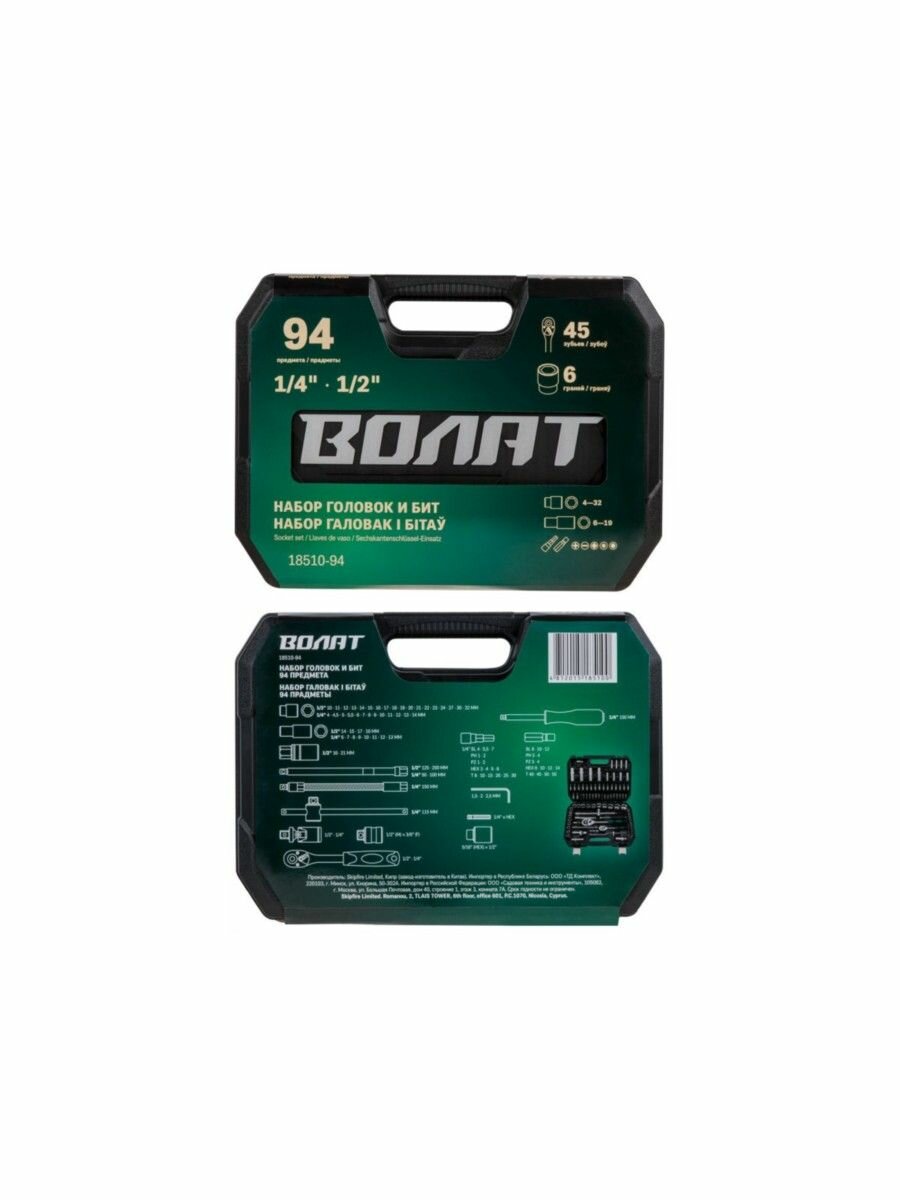 Набор инструментов Волат 1/4 , 1/2 6 граней 94 предмета 18510-94 .