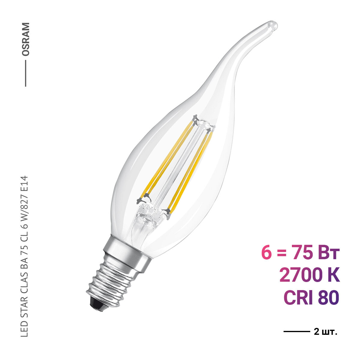 Купить Osram / Ledvance LED STAR CLAS BA 75 CL 6 W/827 E14 (2 шт.)
