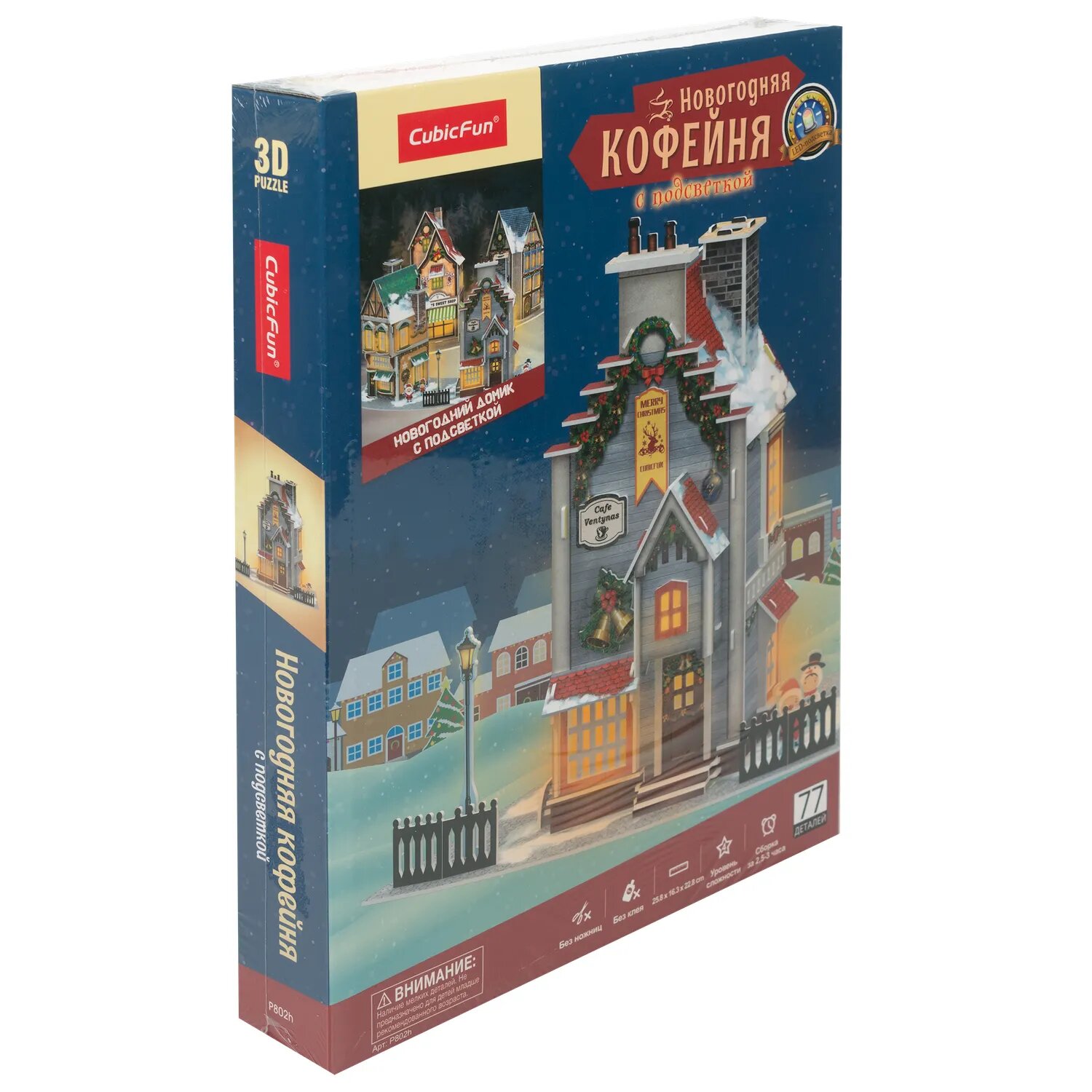 3D пазл Новогодний домик Кафе Вентинас с LED подсветкой. Моя рождественская деревня CubicFun P802h