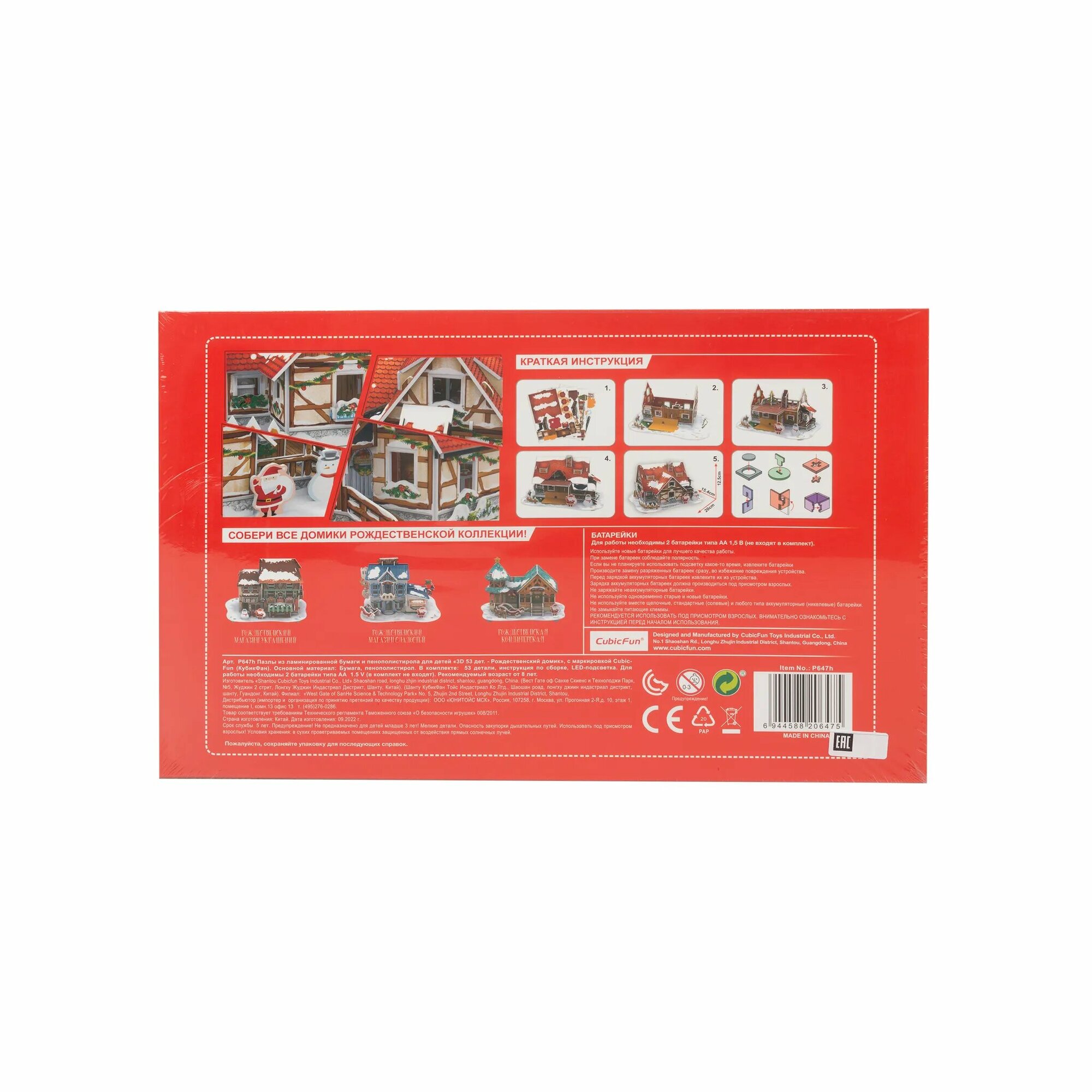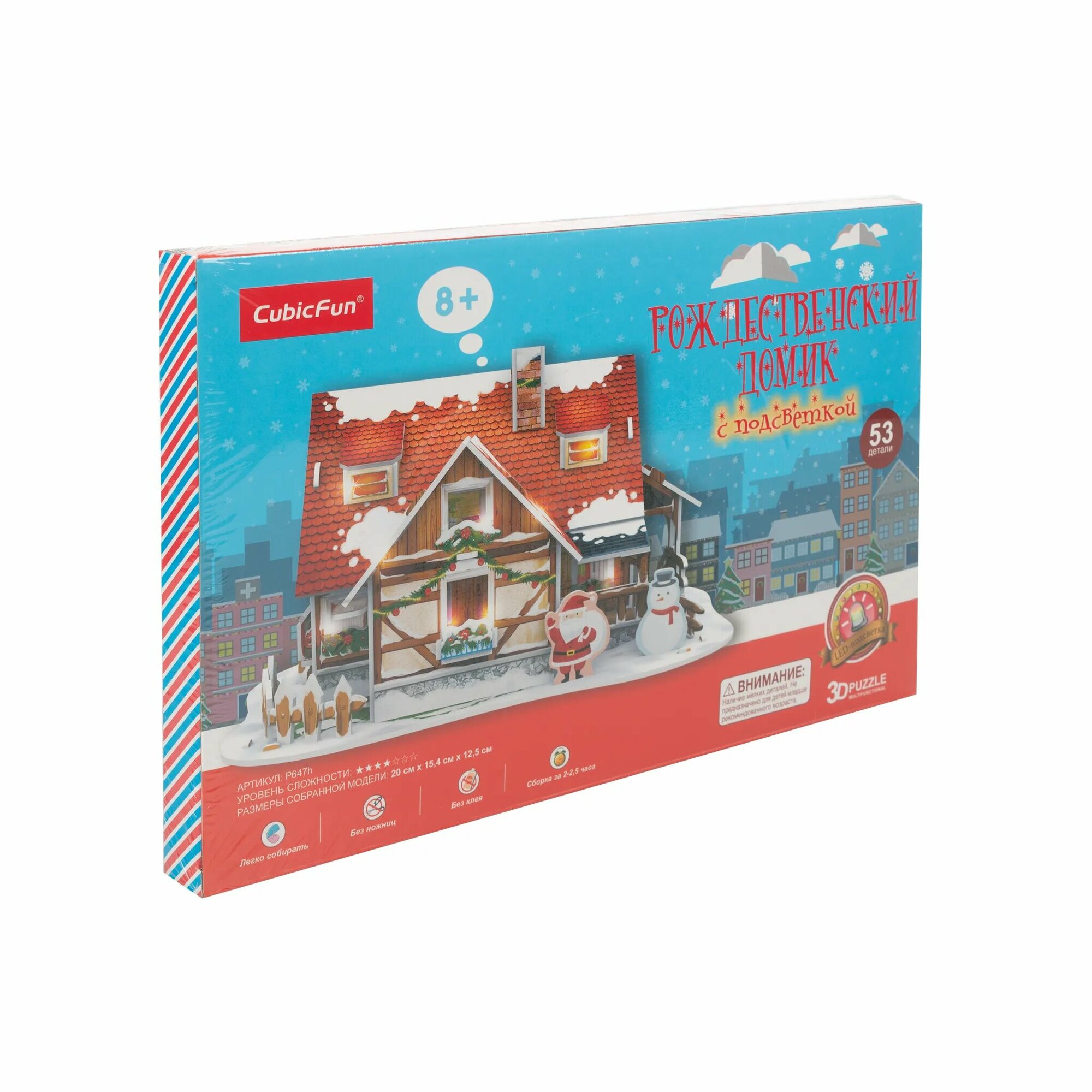 Пазл CubicFun Рождественский домик с LED-подсветкой 3D 53элемента P647h интересное:
