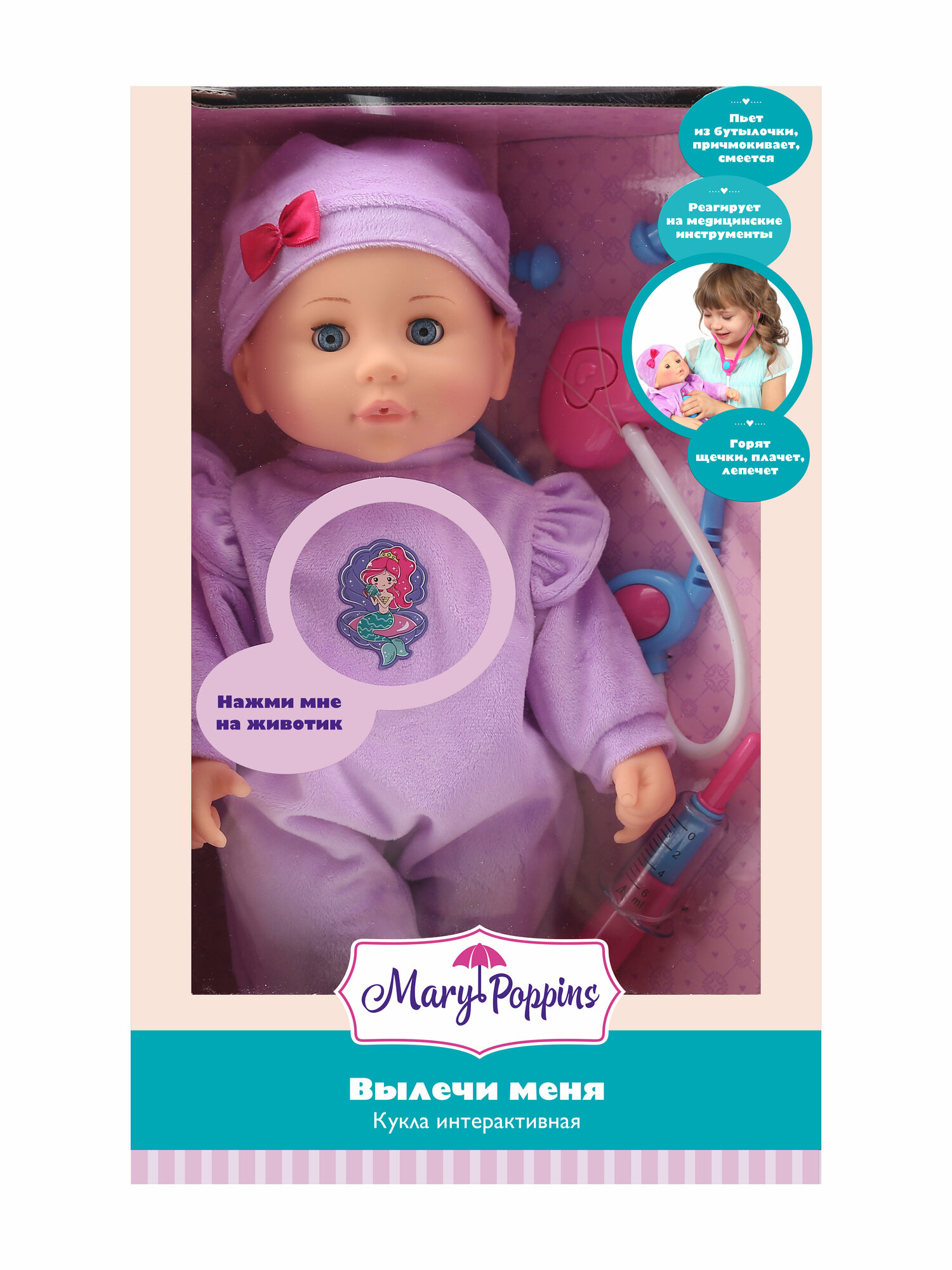 Интерактивная кукла пупс с мимикой "Вылечи меня" Mary Poppins