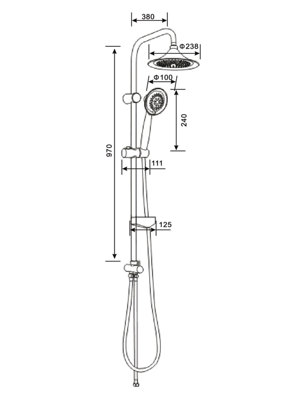 | Дополнительная информация | высота стойки для душа: 970 мм; диаметр душевой лейки: 100 мм; диаметр верхнего душа: 238 мм |