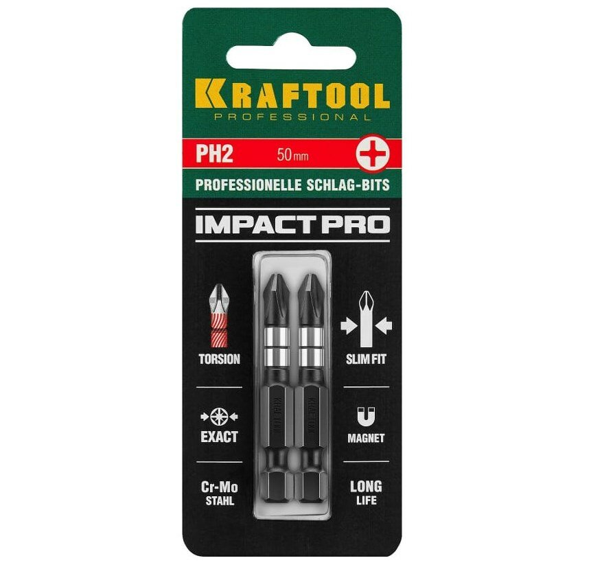 KRAFTOOL Impact Pro PH 2, 50 мм, 2 шт, Ударные биты (26191-2-50-S2)